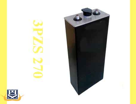 باتری 3PzS270 باتری های صنعتی (PZS) درون محفظه های فلزی تحت عنوان کانتینر قرار گرفته که کانتینرها از داخل و خارج با روکشی از جنس پلی اتیلن پوشیده شده اند و باتری ها (سله ها) توسط بستهای سربی بطور سری/موازی بهم متصل و جوشکاری می شوند. باتری های مذکور با توجه به سفارش مشتری بصورت تک سله ای یا چند سله ای با ظرفیت های مختلف ساخته شده و در همه موارد جلد و درب آنها از جنس PP (پلی پروپیلن) بوده و هنگام مونتاژ برای جلوگیری از نشت یا سرریز شدن الکترولیت تحت فرایند Heat sealing با جلد آب بندی می شوند.