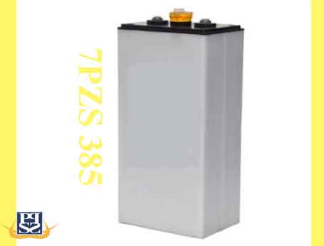 باتری 7PzS385 باتری های صنعتی (PZS) درون محفظه های فلزی تحت عنوان کانتینر قرار گرفته که کانتینرها از داخل و خارج با روکشی از جنس پلی اتیلن پوشیده شده اند و باتری ها (سله ها) توسط بستهای سربی بطور سری/موازی بهم متصل و جوشکاری می شوند. باتری های مذکور با توجه به سفارش مشتری بصورت تک سله ای یا چند سله ای با ظرفیت های مختلف ساخته شده و در همه موارد جلد و درب آنها از جنس PP (پلی پروپیلن) بوده و هنگام مونتاژ برای جلوگیری از نشت یا سرریز شدن الکترولیت تحت فرایند Heat sealing با جلد آب بندی می شوند.